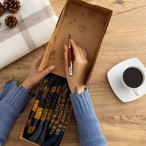 Important:We don't pre-fill the boxes with the socks you’ve ordered or write messages for you.Inside, you'll find a small space for your own handwritten or printed message, making your gift feel personal and truly yours.